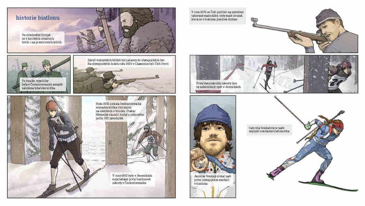 Česká sportovní zima je plná osobností a příběhů. Čeští sportovci toho na lyžích i na bruslích dokázali mnoho a nesmazatelně se zapsali do historie zimních sportů. Tato výpravná publikace představuje jedinečný soubor portrétů osobností i jednotlivých zimních sportů. Od hokeje, krasobruslení, rychlobruslení, biatlonu nebo skoků na lyžích až po horolezectví. Představeny jsou zde osobnosti z posledních let i let minulých, například Jiří Raška, Tomáš Verner nebo Josef Rakoncaj. Ale také okamžiky, které vešly do dějin, nejen těch sportovních, jako třeba vítězství českých hokejistů na Mistrovství světa 1969. Součást knihy tvoří také několik karetních her a pohyblivé loutky.