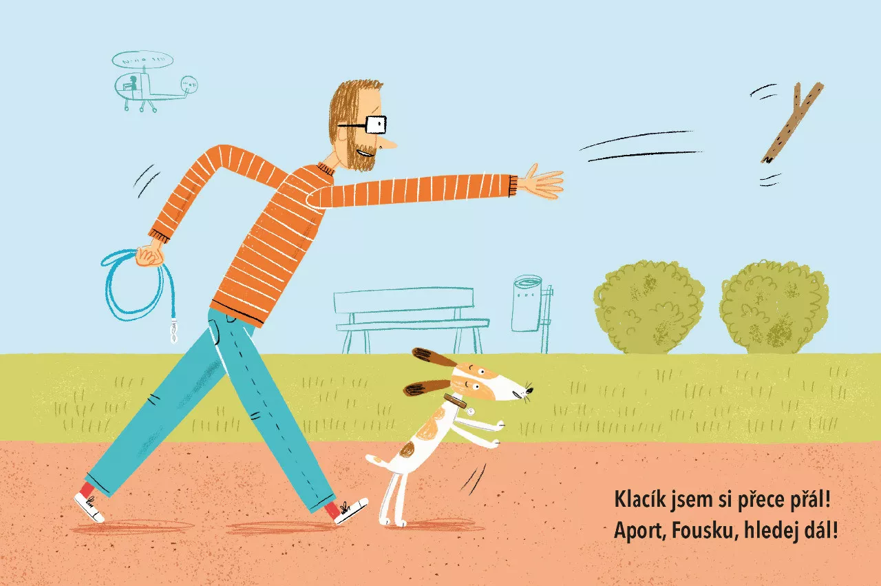 Páníček Láďa venčí svého psa Fouska. Věří, že jeho mazlíček dokáže najít a přinést hozený klacík. Fousek ovšem nachází jiné poklady. Napínavý příběh z každodenního života pejskařů pro úplně nejmenší čtenáře.