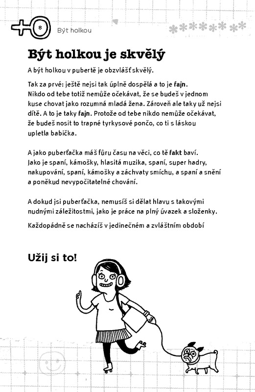 Chytrá, zábavná a otevřená příručka pro dospívající slečny zodpoví všechny důležité otázky, které si kladou dívky v pubertě. Autorka řady knih pro dívky, původně učitelka, upřímně a vtipně vysvětluje vše o dospívání, tělesných změnách, menstruaci, citech a pocitech, sexu i sexuální orientaci nebo šikaně, ale i o praktických věcech, jako je péče o vlasy a líčení. Tato kniha řadě rodičů ulehčí trapné chvilky, kdy se osmělují vstoupit do zrádných vod zásadního rozhovoru s ratolestí na prahu dospívání. Dokonce to udělá za ně.