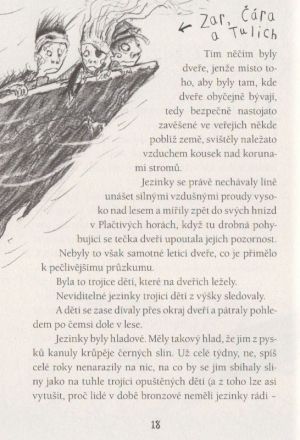 Čára je dívka z kmene válečníků, má však magické oko a kouzelnou lžíci. Zar je chlapec z kmene kouzelníků a má na dlani nebezpečné jeziznamení. Dokážou najít přísady do lektvaru, kterým se lze zbavit jezinek, dřív než jezikráli padne do spárů čarovná moc působící na železo? Čeká je nejděsivější a nejnebezpečnější výprava ze všech. Hvozd zachvátil strašlivý požár a někdo se je chystá zradit...