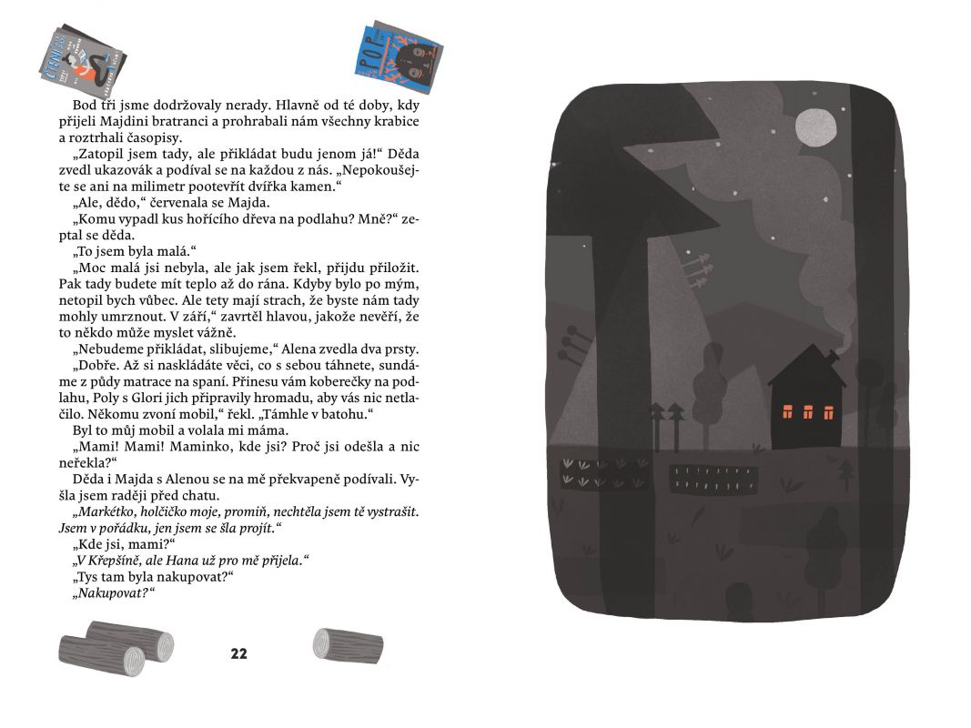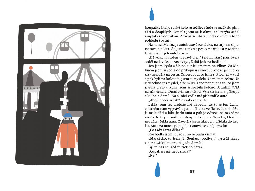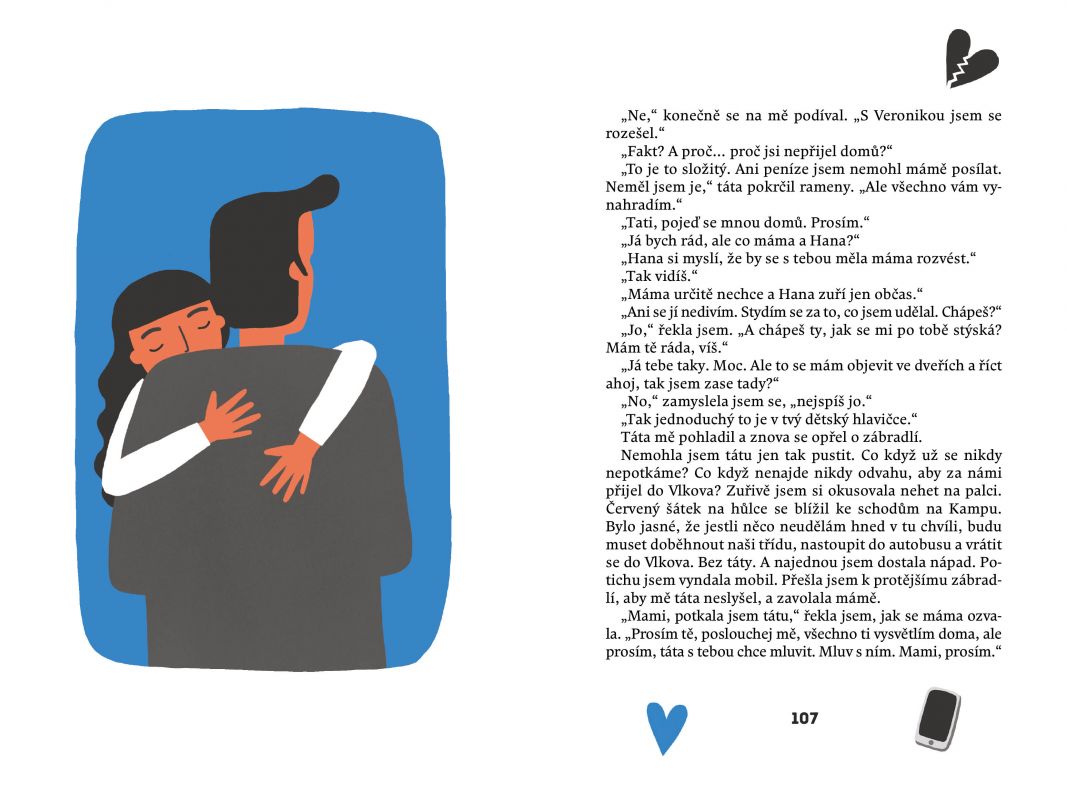 Jmenuju se Markétka, právě mi bylo deset, bydlím ve Vlkově a musím vám něco říct. U nás doma se začaly dít věci, kterým vážně nerozumím. Nejdřív táta pořád telefonoval. Potom si najednou sbalil tašky, nebyl doma, a chtěl mě seznamovat s nějakou nazrzlou Veronikou. Ale já to tak nenechám. Chci, abychom zase byli pohromadě všichni čtyři, máma, táta, já a moje teta Hana, teda mámina o hodně mladší sestra. O mámu, která z toho všeho byla vedle, jsme se už s Hanou postaraly, a teď se postarám i o to, aby se táta vrátil. Zatím se mi zdá, že je to na dobré cestě!