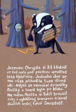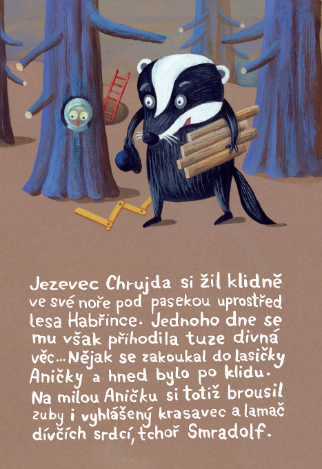 Oblíbený dětský hrdina jezevec Chrujda z lesa Habřince, zvídavý a kamarádský stavitel podzemních chodeb a nor, se ve svém novém příběhu osudově zamiluje. A to do krásné lasičky Aničky – jenomže není sám, kdo by Aničku rád získal. A tak Chrujda musí o svou lásečku bojovat s protřelým tchořem Smradolfem. Naši hebce srstnatí hrdinové se ocitnou v tajemné jeskyni plné nebezpečných tvorů, kteří usilují o jejich život. Odvážný Chrujda nad svým sokem zvítězí ne silou, ale statečností a vynalézavostí a tím Aničku konečně přesvědčí, že on je ten pravý. S jezevcem Chrujdou jsou již neodmyslitelně spjaty vtipné ilustrace nejrůznějších tvorů v lese i na louce od Lucie Dvořákové.